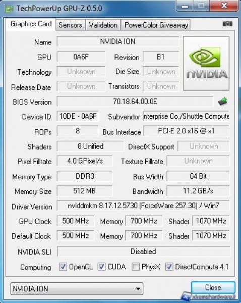 Mini PC Shuttle XS35GT-804 sistema completo - Test Scheda Grafica